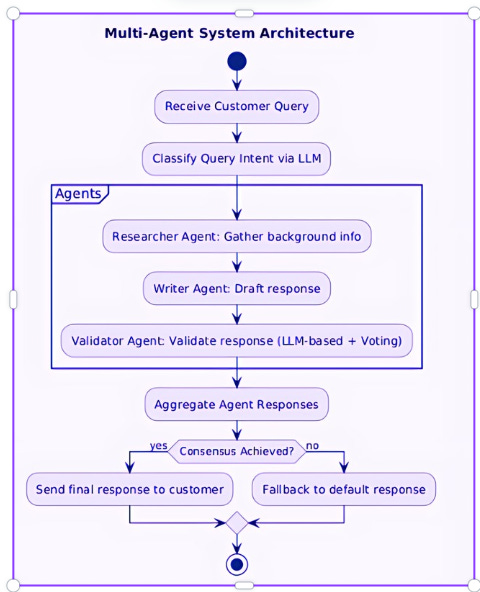 Objective: Orchestrate collaborative AI agents that work together, validate each other’s outputs, and resolve customer queries with enterprise-grade reliability.