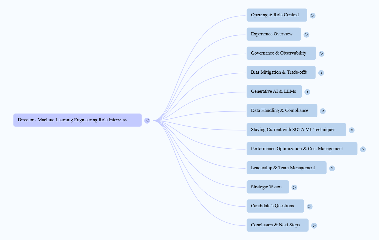 The article is an interview transcript for a Director of Machine Learning Engineering role at TechInnovate Solutions.
