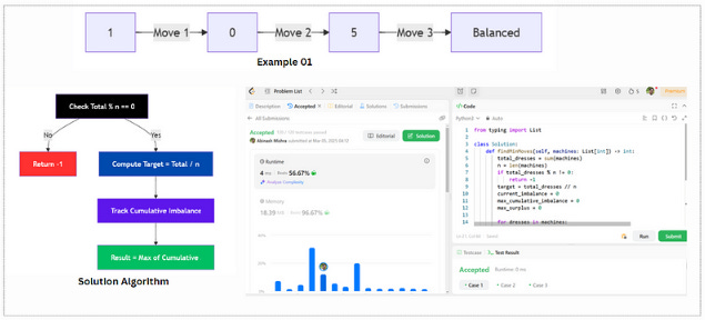 You’re staring at a row of super washing machines, each holding a random number of dresses. Your task? Balance them all to the same number in the fewest moves possible. But here’s the catch: every move allows shifting one dress from multiple machines to adjacent ones simultaneously. How do you even begin to calculate the minimum moves?