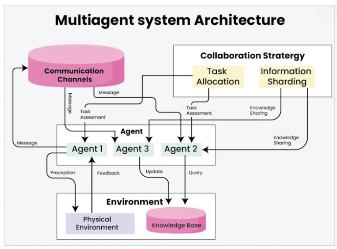 Instead of a single program doing everything, you have many small “agents” that communicate, cooperate, and sometimes even lead one another to solve complex problems.