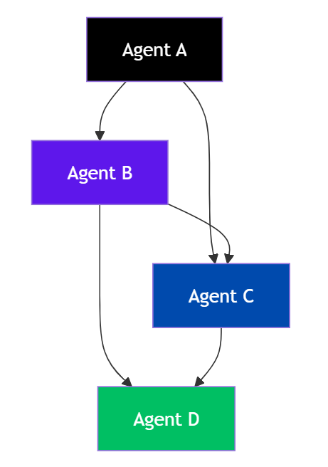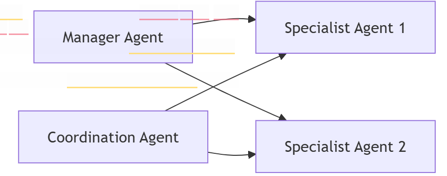 Why it’s cool: It’s super flexible. Each agent can decide on the fly whom to call based on the current task.