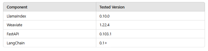 API Layer: Exposes LlamaIndex functionality via a REST API with robust versioning, authentication, rate limiting, and error handling.